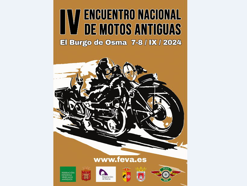Como en las tres ocasiones anteriores, el 7-8 de septiembre se celebrará el IV Encuentro Nacional de Motocicletas Antiguas, Vuelta a Soria, evento organizado por la comisión de motos de la Federación Española de Vehículos Antiguos.