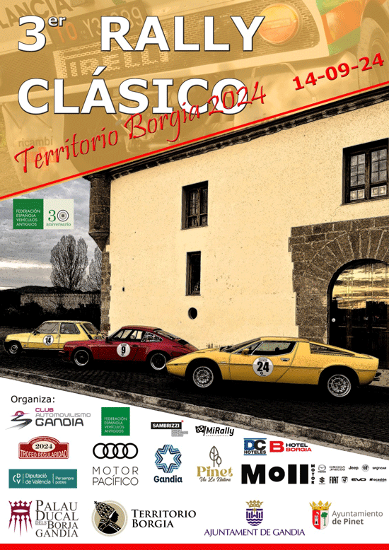 Ya están abiertas las inscripciones para la tercera edición del Rallye Clásicos Territorio Borgia, organizado por el Club de Automovilismo Gandía, quinta prueba del Trofeo de Regularidad de la Comunidad Valenciana (TRCV), que se disputa el próximo día 14 de septiembre. El evento se realiza bajo el reglamento FEVA.