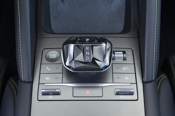 La consola central incluye un par de portabebidas y un reposabrazos integrado que se abre para revelar una de las múltiples zonas de almacenamiento disponibles. El selector de marchas tiene un sofisticado aspecto de diamante tallado, mientras que la zona que lo rodea incorpora botones para algunas funciones clave como el desempañado del parabrisas, junto con el mando del volumen para el sistema de sonido y un selector para los distintos modos de conducción del coche: Eco, Normal, Sport y Snow, que se centran en la eficiencia, la conducción cotidiana, una rápida respuesta del acelerador y la seguridad en condiciones de baja adherencia, respectivamente.