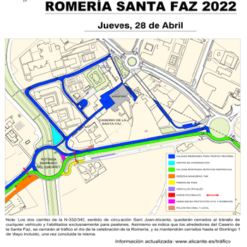 1.- La Avda. Denia (N-332/340), desde el enlace de la Goteta, hasta el cruce de Sant Joan d’Alacant, estará cortada al tráfico en general, pudiendo circular exclusivamente vehículos autorizados.