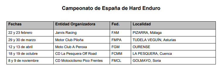 Con 5 pruebas entre febrero y noviembre, y recorriendo otras tantas Comunidades Autónomas, el Campeonato de España de Hard Enduro mostrará, un año más, de lo que son capaces deportistas y máquinas para llevar pericia y consistencia al límite. El certamen verá la luz en poco más de un mes en tierras andaluzas y finalizará a principios de noviembre en territorio soriano.