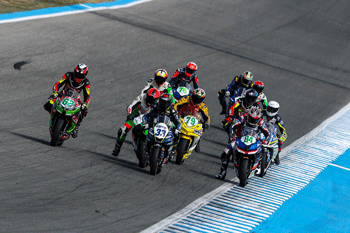 Como no podía ser de otra manera, la carrera de SS300 ha sido en grupo con muchos adelantamientos y cambios de posiciones sin parar. Gonzalo Sánchez, después de su cuarta posición de ayer, hoy necesitaba sumar muy pocos puntos por lo que tenía que salir tranquilo. Aun así, sus ganas de ganar, le han hecho estar peleando en la cabeza de carrera.