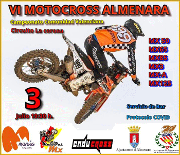 El Club de Motociclismo Enducross Almenara va a ser el encargado de la organización de la prueba que arrancará a las 18h. con las verificaciones administrativas y técnicas. A las 19:30h empezarán los entrenamientos con el siguiente orden de salida: MX3 y MXA; MX85; MX65; MX50 y MX125.