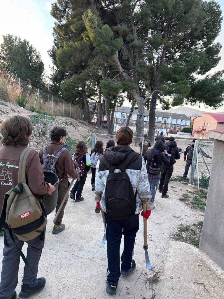 Los árboles han quedado plantados en el Parque Canino, situado en la C/ Pintor Sorolla, junto al Colegio Sant Jaume, en Onil. Además de los técnicos del ayuntamiento de Onil, los alumnos de 1º del Módulo Básico de Formación Profesional de Agrojardinería y Composiciones Florales del Instituto de Educación Secundaria IES La Creueta son quienes han llevado a cabo la plantación, asesorados por sus responsables docentes y por los técnicos de la empresa STV responsable del mantenimiento de la jardinería y el entorno del municipio, quienes se han encargado de proporcionar el material y herramientas necesarias.