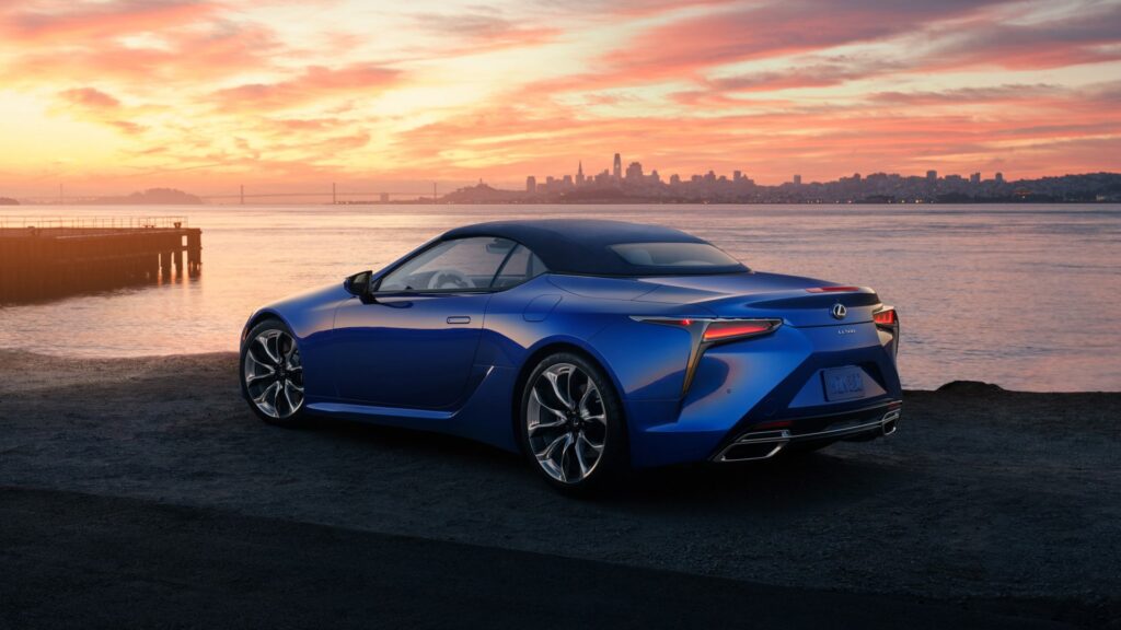 Lexus ha introducido dos nuevos colores de pintura para la carrocería de los nuevos modelos LC Coupé y Cabrio. El color azul eléctrico, con unos potentes reflejos y tonalidades contrastados, confieren a la hermosa carrocería del LC una mayor profundidad. Y el recientemente estrenado color cromático, con una tonalidad rojiza bajo el sol, que se intensifica al caer la luz. Otra modificación importante afecta a la carcasa de los retrovisores exteriores, que ahora incorpora de serie en todos los modelos Lexus LC una cámara que forma parte del monitor de visión panorámica. Asimismo, la remodelación de la carcasa de los retrovisores reduce aún más el ruido del viento y suprime la separación del viento, para un mejor comportamiento aerodinámico. Ahora todos los modelos ofrecen de serie unas nuevas llantas forjadas de 21 pulgadas; llantas con acabado mecanizado 3D y con acabado bitono en negro, o en un exclusivo acabado en negro brillante. Probamos el LC 500 Luxury Cabrio.