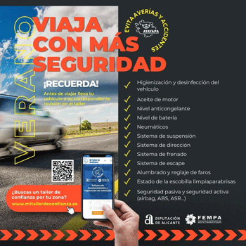Como todos los años, la Federación de Empresarios del Metal de la provincia de Alicante emprende una campaña dirigida a los usuarios del automóvil y la motocicleta para su sensibilización sobre la seguridad vial con motivo de la operación salida de verano. La Campaña de revisiones y seguridad vial incide en la campaña Mi Taller de Confianza y la plataforma www.mitallerdeconfianza.es, puesta en marcha por FEMPA, en la que el usuario podrá buscar y encontrar los talleres que participan en esta plataforma garantizando calidad, profesionalidad, formación técnica especializada y garantía en las reparaciones.