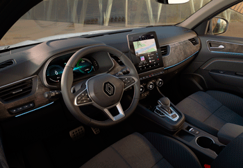 En el interior, los asientos son una mezcla de materiales de origen biológico y alcantara, con una mayor proporción de este material que en las versiones anteriores R.S. Line y E-Tech Engineered. Los asientos presentan costuras azules y un logotipo Alpine en el respaldo. Los cinturones de seguridad también incluyen dos franjas azules. Los paneles de las puertas y el volante presentan un pespunte tricolor azul-blanco-rojo, mientras que la parte del salpicadero situada frente al pasajero delantero tiene un acabado con efecto pizarra que resulta sobrio y elegante a la vez. Por último, sea cual sea el motor elegido, el interior de las versiones esprit Alpine del nuevo Arkana incorpora un selector de cambio electrónico. La gama de nuevo Arkana se ha reducido a tres niveles de acabado: evolution, techno y esprit Alpine.